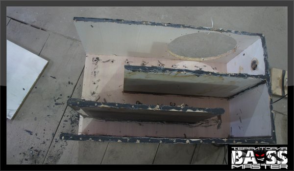 Еще один гигант в оформлении обратно нагруженного рупора. «Мало Баса» — говорил владелец Ларгуса, показывая на пятнадцатидюймовый JBL GTO1502D в корпусе с фазоинвертором. Ну конечно, откуда же ему взяться через такую узкую щелочку, с «горбом» в районе 45hz. Так как в пространстве меня не ограничивали, то «надо делать бомбу ширикого радиуса поражения» — как-то сразу возникла такая мысль. Мало баса? — получай!