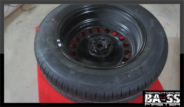 Шли годы.. 1..2..3..4..5..6.... потом позвонил человек и сказал: «Я хочу сабвуфер в запасное колесо! Можно это сделать?». «-Конечно можно!». Сабвуферы в запаску я еще не делал, это первый. Разумеется к этому делу я подошел основательно, пересмотрел все возможные варианты в соотношении глубина/объем/ачх/мощность/качество, сократил список до 10 позиций и клиент выбрал Kicker CWRT 102, купил привез динамик, оставил колесо и дал денег на творчество)