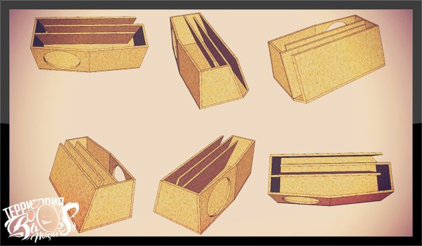 Очередной корпус не обошелся без изюма. Изюмом здесь выступила не совсем стандартная его форма, а именно лицевая часть, чем-то напоминающая утюг, что придало некой хмурости и серьезности. А полезный объем 35 литров и настройка 31hz позволили получить практически ровную полку от 20hz до 50hz и плавный спад до 100hz.