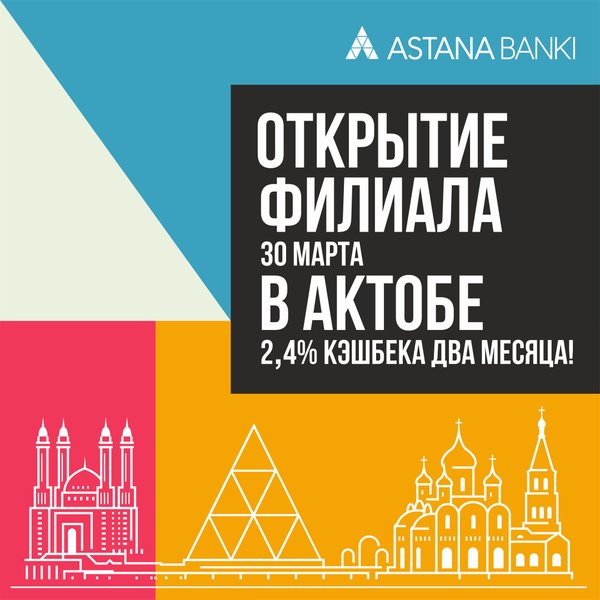 Актюбинцы, 30 марта мы открываем филиал в вашем городе! В связи с этим, мы объявляем два месяца повышенного кэшбэка для всех держателей карт Банка Астаны в Актобе! Кроме того, мы разыграем много крутых подарков. Также мы приготовили для вас сюрприз, о котором расскажем ближе к открытию. Мы будем ждать вас 30 марта в 12:30 по адресу Санкибай Батыра 249.