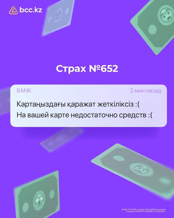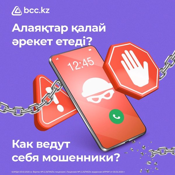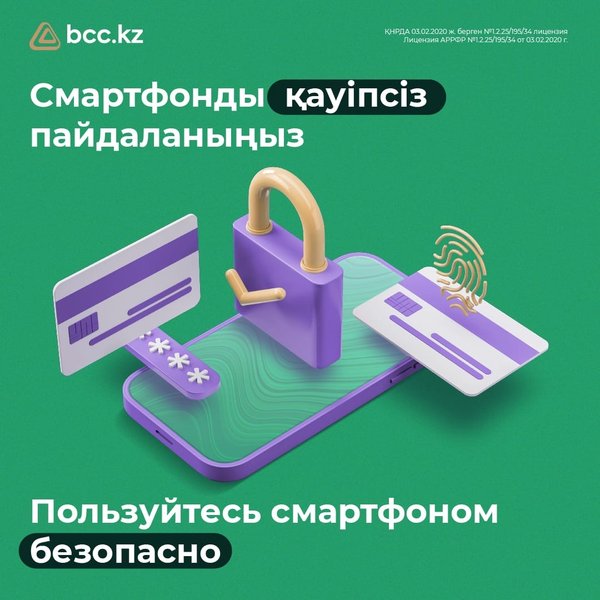 динамикалық CVV-ді іске қосыңыз ▫️ Өзіңіздің қажеттіліктеріңізге сәйкес карта бойынша лимиттерді басқарыңыз ️ Егер карта жоғалса, онда оны BCC.KZ қосымшасының өзінде бұғаттауға немесе 505 телефон нөмірі бойынша (ұялы телефоннан қоңырау шалу) банкіміздің call-орталығына хабарласуға кеңес береміз. *** Наш банк уделяет особое внимание вопросам безопасности и сохранности данных клиентов. Для этого мы реализовали все функции, позволяющие гибко и эффективно управлять параметрами безопасности в приложении BCC.KZ Делимся с вами простыми правилами: ▫️ Скачивайте мобильное приложение BCC.KZ только в официальных магазинах приложений ▫️ Своевременно устанавливайте обновления приложения BCC.KZ ▫️ Используйте распознавание лица или отпечатка пальца для входа в приложение ▫️ Активируйте динамический CVV, чтобы повысить безопасность онлайн-покупок ▫️ Управляйте лимитами карты в соответствии с вашими потребностями ️Если карта пропала, рекомендуем блокировать ее прямо в приложении BCC.KZ или обратиться в call-центр нашего банка – бесплатно по номеру 505.