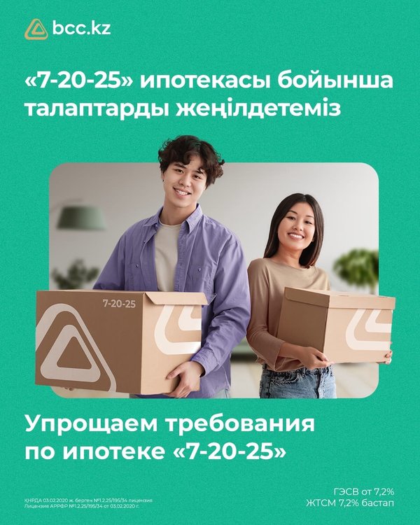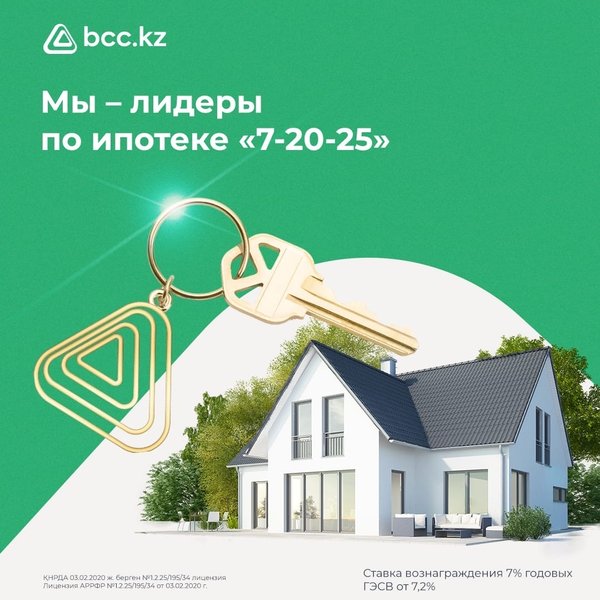 удың да қажеті жоқ. Біздің банк ұсынатын ипотекалар бойынша жан-жақты кеңес алу үшін кез келген бөлімшедегі ипотека бойынша кеңесшілерімізге жүгінуге, сонымен қатар келесі телефон нөмірлері арқылы хабарласуға болады: ▫️505 (мобильді телефоннан қоңырау шалу тегін) ▫️WhatsApp) * * * Знаете ли вы, что каждая вторая ипотека «7-20-25» в Казахстане оформлена в нашем банке? С начала 2022 года мы одобрили заявки по ипотеке на более 129 млрд тенге и приняли к рассмотрению более 12 000 заявок на программу «7-20-25». На текущий момент доля нашего банка от общего объема выданных ипотек в Казахстане составляет 51,3%. Мы не устаем благодарить клиентов за доверие Благодаря уникальной, разработанной нами скоринговой системе предварительное одобрение по займу занимает меньше 1 минуты и не выходя из дома. Подробную консультацию по ипотекам нашего банка вы можете получить у наших ипотечных консультантов в любом отделении, а также по номерам: ▫️505 (бесплатно с мобильного) ▫️WhatsApp)