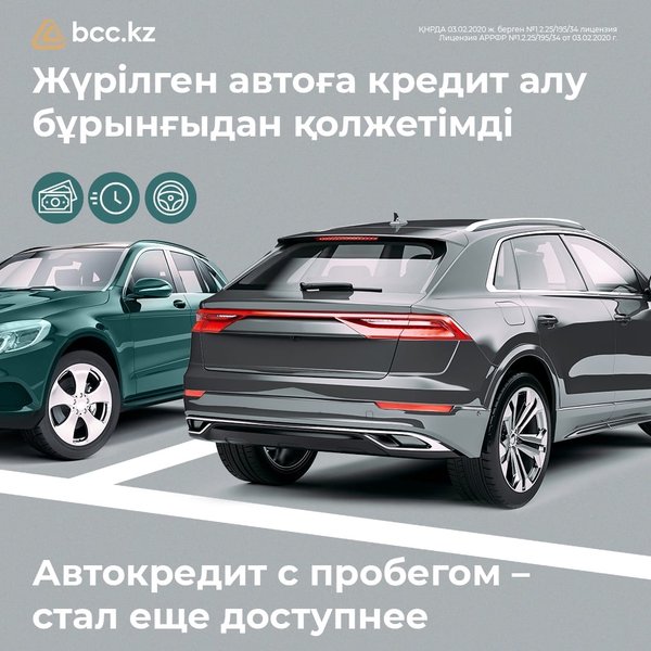 Көптен бері көлік сатып алуды жоспарлап жүрсіз бе? Біздің банкте жүрілген автоға кредит алуға болады. Суреттерде толық шарттар көрсетілген *** Давно планируете приобрести машину? В нашем банке действует кредитование на покупку авто с пробегом. Листайте картинки – в них подробные условия
