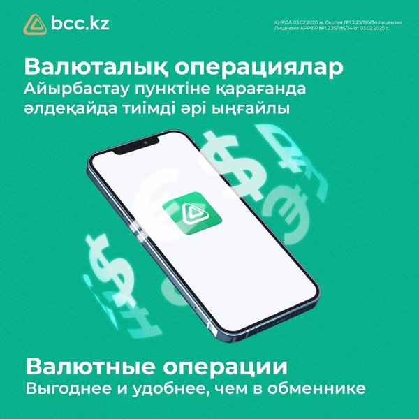 ларға байланысты емес, сонымен қатар таныстар мен байланыстарды талап етпейді. *** Мгновенная конвертация, не выходя из дома – это возможно! Мы разработали FX-платформу в приложении BCC.KZ как раз для этого. В чем преимущества обмена валют на FX-платформе? ▫️ Экономия. Благодаря максимально выгодным курсам вы можете экономить с каждой сделки. ▫️ Безопасность. Нет необходимости перевозить крупные суммы денег, поэтому можно не опасаться мошенников. ▫️ Скорость. Всего за считанные секунды вы можете конвертировать большие объемы валют. ▫️ Объективность. Курсы на FX-платформе складываются из спроса и предложения, и не зависят от человеческого фактора и не требуют знакомств и связей.