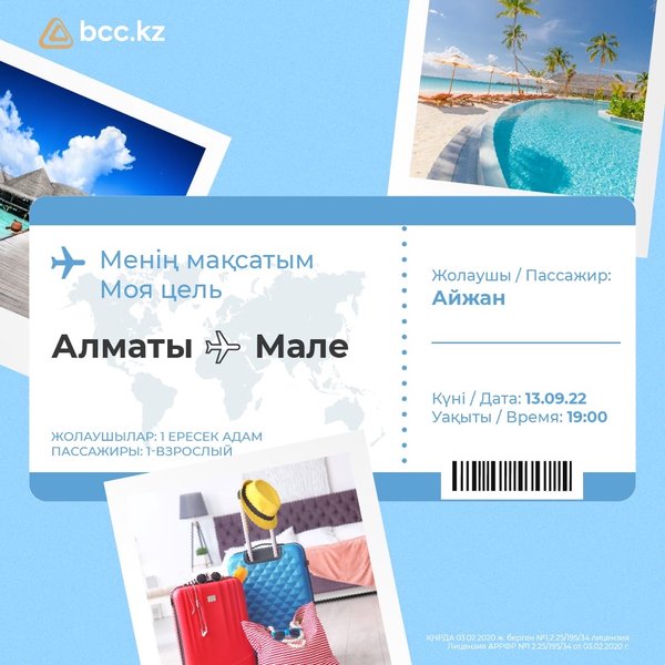 Біздің банк NurAi&CO туристік компаниясымен бірге #картакартаның клиенттері үшін ұтыс ойынын жариялайды – 19 жеңімпаз өз қалауы бойынша кез келген елге жолдама ұтып алады Ұтыс ойынына қатысу үшін #картакарта арқылы 3000 теңгеден басталатын сомаға кез келген сауда жасаңыз Талаптары: Ұтыс ойыны 10 тамыздан бастап 10 қазанға дейін өтеді Жеңімпаздар 13 қазанда тікелей эфир арқылы рандом әдісімен анықталады Төлемдеріңіздің саны тізімдегі қатысушылар санына тең болады. Көбірек төлем жасаған сайын, жеңімпаз атану мүмкіндігіңіз де артады 19 жеңім… — Читать дальше