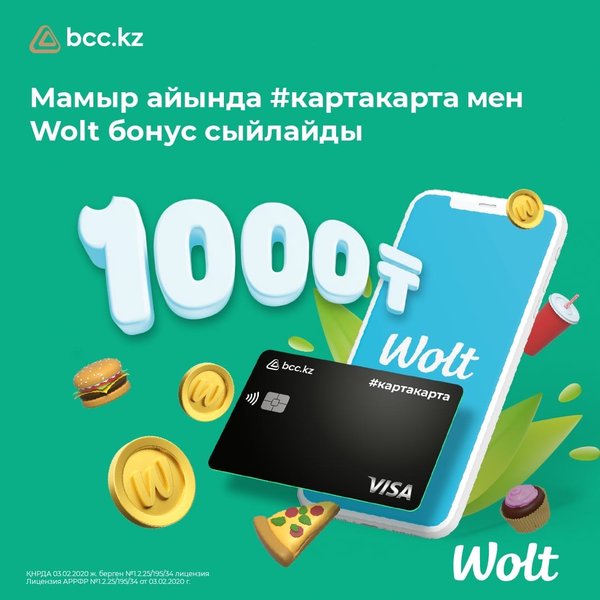Wolt қосымшасында #картакарта арқылы Coca-Cola-мен сүйікті комболарыңызға тиімді тапсырыс беріп, 30% супер кэшбэк алыңыз Комбо құнының 30% сомасындағы бонустар тапсырыс жеткізілгеннен кейін Wolt қосымшасына аударылады. Оларды 14 күннің ішінде келесі тапсырысқа пайдалануға болады. Акцияға қатысатын Coca-Cola мен комбоны Wolt қосымшасының басты бетінен көруге болады. Төлем құралы ретінде #картакартаны Wolt қосымшасының жеке профиліндегі «Төлем жасау әдістері» тарауында қосуға болады. Apple Pay немесе Google Pay арқылы төлем жасаған кезде, бон… — Читать дальше