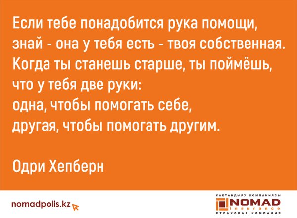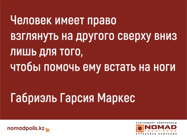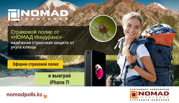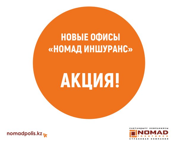 ова, д.36/19, уг. ул. Тимирязева. Фотографию опубликовать на своей страничке со словами: «Я выбираю НОМАД Иншуранс!» (на фото должен быть виден логотип компании). Важно: отметить нашу страничку и отправить ссылку в комментарии к этой публикации. Среди всех участников, что выполнят все условия, мы разыграем фирменный видеорегистратор! Каждый участник, что выполнит условия, станет ближе к розыгрышу iPhone! Подробные условия (обязательно прочтите): — сфотографироваться на фоне офиса компании по указанному адресу: г. Алматы, ул. Маркова, д. 36/19, уг. ул. Тимирязева; — на фотографии ОБЯЗАТЕЛЬНО должны быть видны вывеска или флаг с логотипом «НОМАД Иншуранс»; — опубликовать фотографию на своей страничке с текстом «Я выбираю НОМАД Иншуранс!»; — отметить нашу страничку под фотографией; — отправить ссылку на фотографию в комментарии к этой публикации; — среди всех участников, что выполнят все условия, будет разыгран фирменный видеорегистратор; — розыгрыш будет проведён при помощи сайта random.org (или схожих по функционалу); — срок акции: с 18 по 25 октября (включительно); — в розыгрыше не могут принять участие сотрудники «НОМАД Иншуранс». — чтобы принять участие в розыгрыше iPhone, нужно выполнять минимум 5 заданий (из 10).