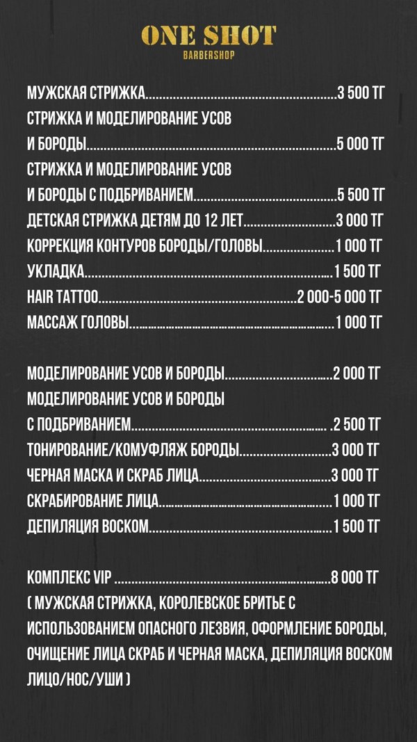 ONE SHOT BARBERSHOP г.Усть-Каменогорск23 декабря 2018 в 13:21