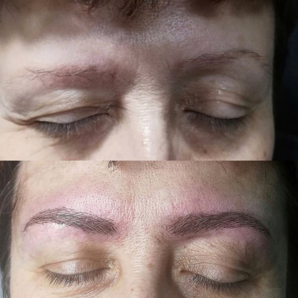 бровей; 3D-татуаж- лучший метод для тех случаев, когда одна бровь выше или длиннее другой или имеет другую форму. По сути, комбинация волоскового и шотирования: часть штрихов воспроизводит волоски, а часть растушевывается. Перманентный макияж – процедура относительно недолгая и довольно безболезненная.