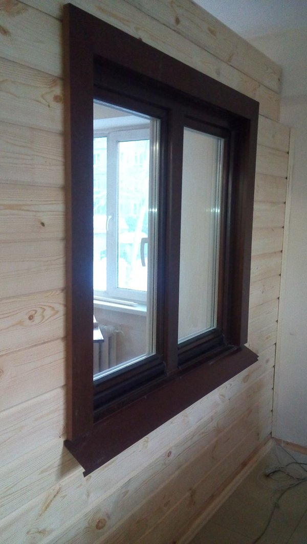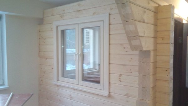 Выглядит прекрасно и сама установка прошла быстро. Всё благодаря тому, что брус и окно выполнены на одном заводе и идеально подходят по размерам проем и сам оконный блок.