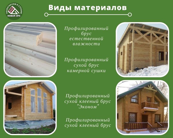 В качестве материала в ассортименте присутствуют: 1) Профилированный брус или оцилиндрованное бревно; 2) Брус естественной влажности или камерной сушки; 3) Производство местное или Россия; 4) Брус в теплый угол, в чашку. 5) Погонажные изделия (европанель, половая рейка, имитация бруса, блок-хаус и прочее) Возможен вариант закупа материала без дополнительных услуг. Более подробную информацию Вы можете узнать при непосредственном общении с нашими специалистами.