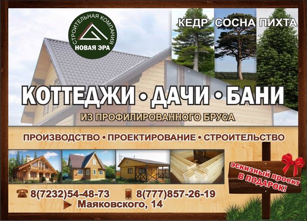 Здравствуйте! Компания «Новая Эра» — это новое развитие деревянного строительства в Казахстане. Мы поможем построить дом, баню, коттедж Вашей МЕЧТЫ в кратчайшие сроки по оптимальным ценам и с использованием качественных материалов. Своей задачей мы ставим сопровождение разработки проекта от эскиза до рабочей стадии, подбор материала, поставщиков, подрядчиков и сдачу объекта под ключ! Таким образом, Вы можете быть уверены, что работа всех инстанций и подрядных организаций будет согласована между собой, выполнение работ будет контролироваться… — Читать дальше