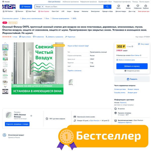 ️ Почему Оконный Фильтр OKFIL стал бестселлером (лидером продаж) на маркетплейсе OZON: 1. Мы всегда предлагаем продукцию только высокого качества, сделанную из первичного материала (Россия, Корея, Китай, Италия, Германия), которая реально приносит пользу, красиво выглядит и покупается по совету друзей! 2. 100% доставка вовремя и бесплатно. 3. Отзывы покупателей 5 звёзд. 4. Скидка -33% для покупателей OZON, а для OZON Premium дополнительные скидки. 5. Беспроцентная рассрочка на 6 месяцев. У нас широкая сеть сервисных центров по франшизе в 85 го… — Читать дальше
