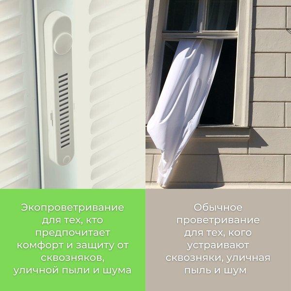 с защитой от шума, пыли и сквозняков. Окна при таком проветривании остаются плотно ЗАКРЫТЫМИ и не надо ночью просыпаться от духоты, чтобы открыть окно, а потом от холода, чтобы закрыть окно. Приятных вам снов и легкого пробуждения Узнать точную стоимость и рассчитать количество необходимых Оконных Фильтров на комнату можно здесь