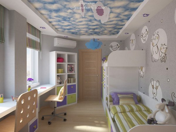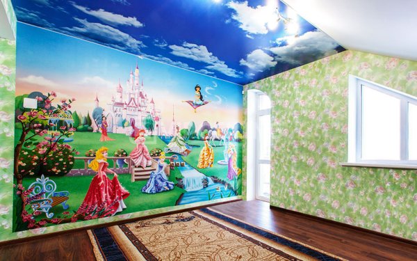 Поскольку все дети – большие мечтатели и фантазеры, важную роль в оформлении детской комнаты играет потолок. Натяжной потолок в детскую сможет воплотить множество оригинальных дизайнерских идей, которые обязательно увлекут и заинтересуют вашего малыша. На поверхность пленки с помощью качественной масштабной фотопечати можно нанести любых персонажей или просто спокойные, умиротворяющие пейзажи (море, облака).
