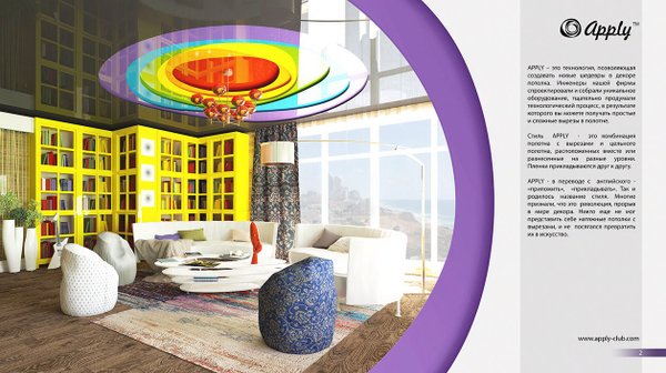 Apply — это потолки нового поколения. Особенность этих потолков — это декоративные вырезы на натяжном полотне. Технология натяжных потолков Apply позволяет художественно оформить потолок совершенно новым способом отличным от всех ранее существующих. Можно изобразить цветы, фигуры,бабочек, лунную поверхность, разные сетки все, что угодно. Игрой художественных вырезов, света и цвета, а также отражения, можно задать тему, которая будет повторяться в интерьере. Звоните и записывайтесь на бесплатный замер! --- DELETED (14.03.2017): Пост удалён