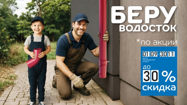 Бери водосток по скидке в ноябре! Уже скоро пойдут осенние дожди, так что самое время позаботиться о защите дома от губительного воздействия воды. С этим справятся надёжные и стильные водостоки от «Металл Профиль». Скидки на водосток в Поволжье Скидки на водосток в ЦФО Скидки на водсток на Юге Скидки на водосток на Урале Предложение действует в офисах продаж «Металл Профиль», а также при оформлении онлайн-заказа на сайте metallprofil.ru.