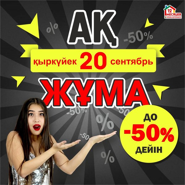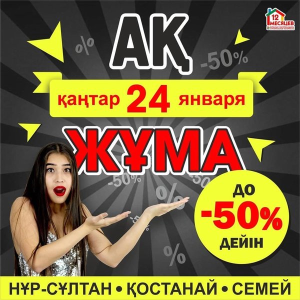 Ақ жұма!!!! 24 января только лучшие предложения от «12 Месяцев»! __ ГОРОДА проведения акции: ___ ТОЛЬКО ОДИН ДЕНЬ СКИДКИ ДО 50%!!! ___⠀ У нас Вы найдете все для ремонта: сантехника, кафель, обои, двери, ламинат, ванны, сухие смеси, краска, люстры, электроинструмент, все для дома __