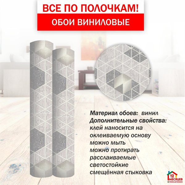 льцев, так и на окружающих людей. _ Это виниловые обои на флизелиновой основе, ширина составляет 0.70 см, длина 10 м. В современном дизайне почетное место занимает оригинальный дизайн в виде пчелиных сот, который делает каждое пространство более просторным, элегантным и динамичным одновременно. _ Воплощайте мечты о красоте и комфорте вместе с компанией «12 месяцев »