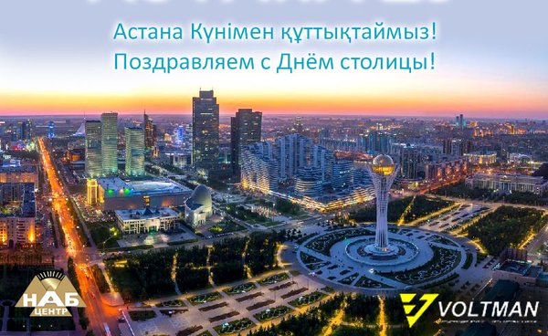 От всей души поздравляем Вас с государственным праздником Республики Казахстан – Днем Столицы! Астана – это гордость казахстанцев, символ независимости и суверенитета страны, символ стабильности и экономического роста нашего молодого государства. В этот праздничный день желаем Вам мира, добра, благополучия и новых свершений на благо нашей Родины — Республики Казахстан!