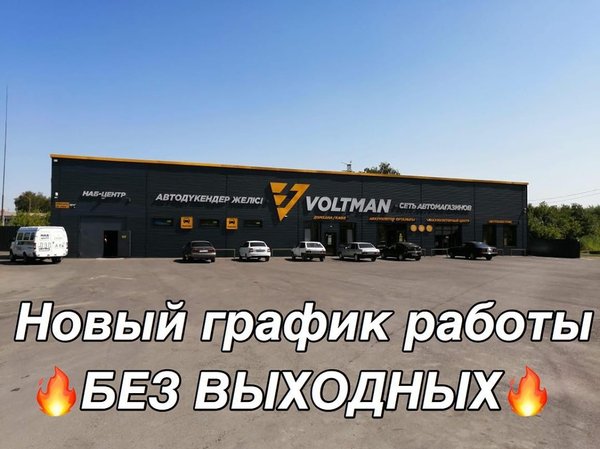 ате принимаются все виды платежей, включая популярные системы покупок в рассрочку Kaspi Red и PayDa, а для организаций готовятся сопроводительные документы, зона установки вмещает до 5 автомобилей одновременно. Режим работы магазины Voltman с 8.00 до 18.00, без перывов на обед, выходной воскресенье. Кроме того, продолжает работать магазин по адресу ул. Жумабаева 1 «А». По всем вопросам работы магазина, ассортименту и ценам можно обращаться по телефонам:, Дамир Рафхат