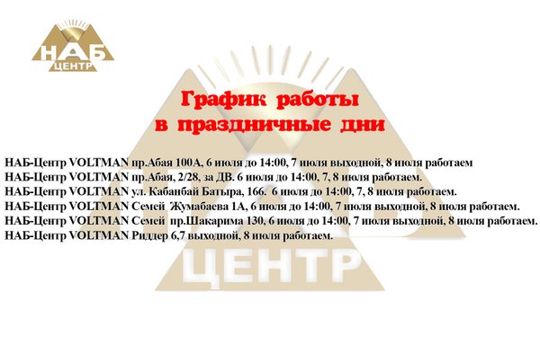 У нас отличная новость Теперь все филиалы НАБ-Центр Voltman работают без выходных‼
