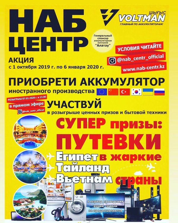 Официальная группа Вконтакте аккумуляторная компания НАБ-Центр VOLTMAN Шығыс на проспекте Абая
