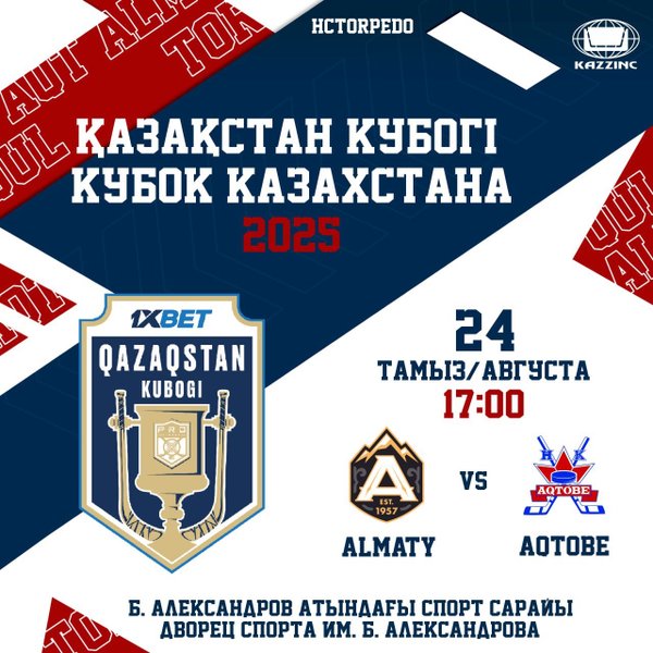 Құрметті жанкүйерлер! Қазақстан Кубогі ойынына шақырамыз «Алматы» (Алматы) және «Ақтөбе» (Ақтөбе) командалары кездеседі! Кіру тегін (Шығыс трибунасы, Үлбі өзені жағынан) Уважаемые болельщики! Кубок Казахстана — во Дворце спорта имени Бориса Александрова Встретятся ХК «Алматы» (Алматы) и ХК «Актобе» (Актобе). Вход свободный (восточная трибуна со стороны Ульбы)! Ждем вас на хоккее!