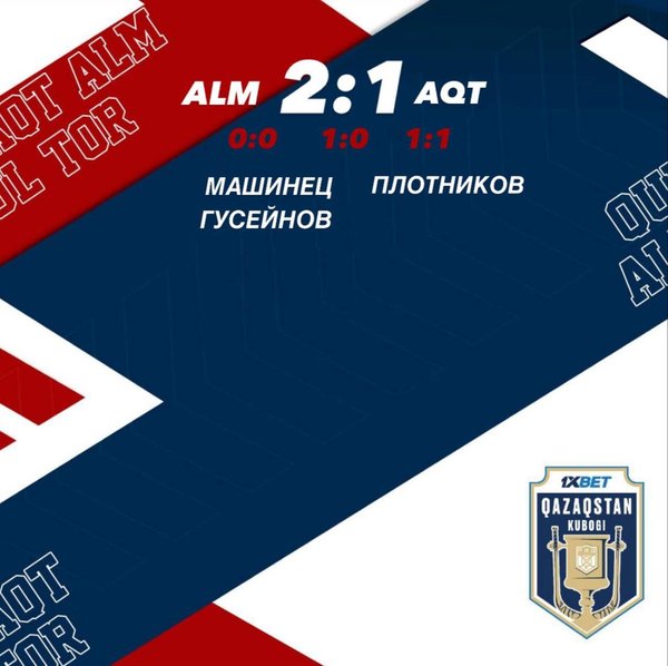 Қазақстан Кубогінің ойынында «Алматы» «Ақтөбеден» басым болды В матче Кубка Казахстана «Алматы» одерживает победу над «Актобе»