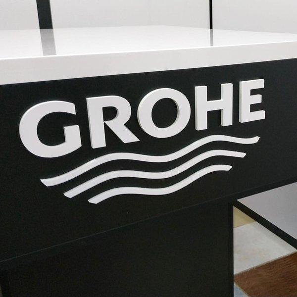 Оформление торговых стендов стеллажей Grohe Kazakhstan.