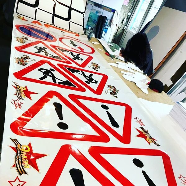 Работа в цехе) делаем знаки на Светоотражайке, пленка со световозращающими свойствами! Знаки дорожные