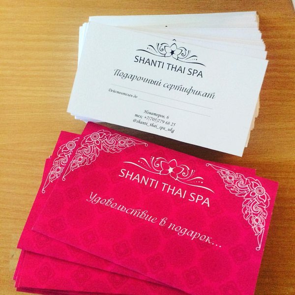 Подарочные сертификаты для массажного салона Shanti Thai Spa Усть-Каменогорск