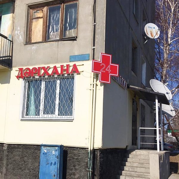 Угловая вывеска Дарихана+Аптека. Любые рекламные решения на Ваш вкус!