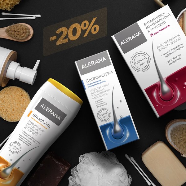 снизили цены на всю продукцию Alerana с 15 по 30 ноября до -20%! • — предотвращение и уменьшение выпадения волос — стимулирование их роста — укрепление и улучшение состояния волос — обеспечивают волосяные фолликулы веществами, необходимыми для роста и развития — способствует появлению здорового блеска — широкий выбор: шампуни, бальзамы-ополаскиватели, сыворотки, стимулятор роста ресниц и бровей, витаминно-минеральный комплекс • Здоровые и красивые волосы с Alerana — это возможно!