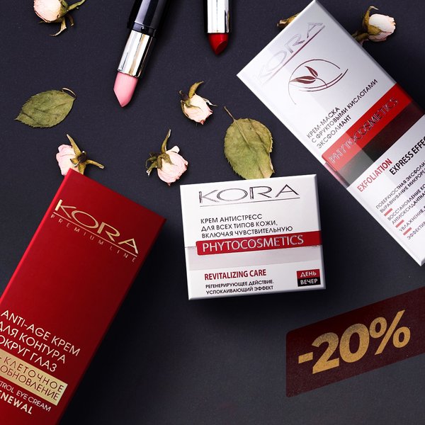 «Кора» — косметика для Вашей красоты! С 1 по 15 ноября приобретайте продукцию «Кора» по суперцене — со скидкой -20% в сети аптек «Биосфера»! — лечебно-профилактическая косметика — максимально высокое содержание растительных компонентов — увлажнение, питание и восстановление кожи — производство: Россия — возраст: от 18+, anti-age — широкий выбор: очищение, тонизирование, маски, крема, — помощь с пигментацией, куперозом, акне «Кора» — когда о Вас заботится сама природа! Подробнее на biosfera.kz