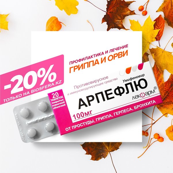 В период простуд о здоровье нужно задуматься заранее и помочь организму выстроить противовирусный барьер, для этого понадобится надёжный противовирусный препарат для всей семьи. ⠀ ⏰ Скидка -20% на Арпефлю 100 мг № 20 табл.п.о. при заказе на biosfera.kz c 15 по 30 ноября! ⠀ Арпефлю — современный противовирусный препарат, который блокирует размножение вирусов и активирует иммунную систему ⠀ обладает противовирусным и иммуномодулирующим действиями ускоряет выздоровление и предотвращает возможные осложнения эффективен как в комплексной терапии… — Читать дальше