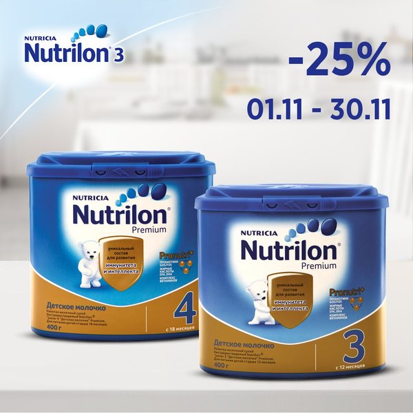 Осенняя пора – это не только буйство красок и теплые уютные вечера, но и самое время для укрепления иммунитета. И в этот период важную роль играет рацион питания малыша. Nutrilon 3 с комплексом Pronutri+ способствует развитию иммунитета и интеллекта, помогая вашему ребенку развиваться. И у нас отличная новость! С 1 ноября по 30 ноября будет действовать скидка -25% на детское молочко Nutrilon 3 и Nutrilon 4 (400 гр). Не упускайте возможность обеспечить своего малыша правильным питанием для укрепления иммунитета *Грудное молоко — лучшее питание… — Читать дальше