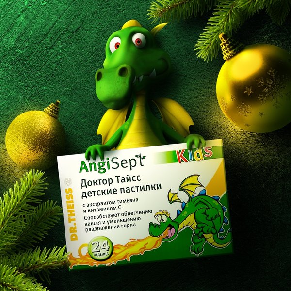 Зима ️ вступила в свои права А вместе с ней пришел и сезон простуд! ️ AngiSept Kids от Доктора Тайсс придет на помощь маленьким горлышкам! AngiSept Kids- это пастилки на натуральной основе, которые содержат: Витамин С для укрепления иммунитета и снижения выраженности воспаления Экстракт тимьяна для облегчения кашля и отхаркивания AngiSept Kids-быстрое и вкусное решение от боли в горлышке!