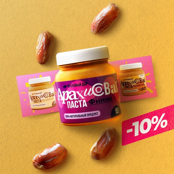 екстуру и яркий аромат орехов, который понравится всем. Никаких загустителей, ароматизаторов и красителей! 100% натуральный состав. 4️⃣ Великолепных вкуса: классическая и хрустящая арахисовые пасты, арахисовая паста с добавлением финика (для тех кто любит послаще) и кокосовая паста (для любителей экзотики)