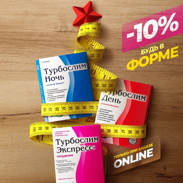 а-липоевой кислоты, L-карнитина и витаминов группы B активизирует обменные процессы в организме, способствует расщеплению жиров. ️Напряженный ритм жизни. Нет времени на здоровый образ жизни? Препараты «Турбослим день» и «Турбослим ночь» помогают худеть круглые сутки, запуская в организме процессы усиленного дневного и ночного похудения. ️ Хочешь быстрых результатов? Воспользуйся трехдневным курсом «Турбослим экспресс-похудение». Экстракт гуараны, содержащийся в капсулах, ускоряет сжигание жиров. Турбослим® эффективно поможет Вам избавиться от лишних сантиметров в условиях ограниченного времени! Худейте без вреда для здоровья!
