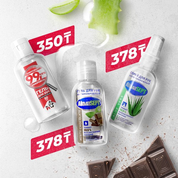 Не теряем бдительность и надеемся на скорейшее улучшение эпидемиологической обстановки Вы можете быть уверенны в чистоте рук даже без воды и мыла Антисептики Akmasept и Dr.Pi: убивают 99,9% бактерий удобные формы: в виде спрея и в виде геля не сушат кожу и подходят для частого применения не вызывают аллергию не требуют смывания разные ароматы: Minty Chocolate, Aloe Vera, Vanilla light для тех, кто не любит лишних запахов — антисептик без ароматизаторов No Perfume Антисептический гель для рук Dr.Pi 50 мл — 350 тенге Akmas… — Читать дальше