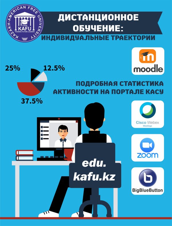 С целью качественного проведения онлайн-занятий и консультаций, установления обратной связи обеспечена возможность использования видеоконференцсвязи через платформу Big blue button, а также через онлайн-чаты. На портале КАСУ размещена основная литература по всем образовательным программам, тем самым обеспечена доступность к электронным ресурсам.