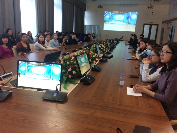 С.Аманжолов атындағы Шығыс Қазақстан мемлекеттік университетінің студенттері «Жас Отан» ЖҚ-ның IV съезін тікелей эфирден көрді.
