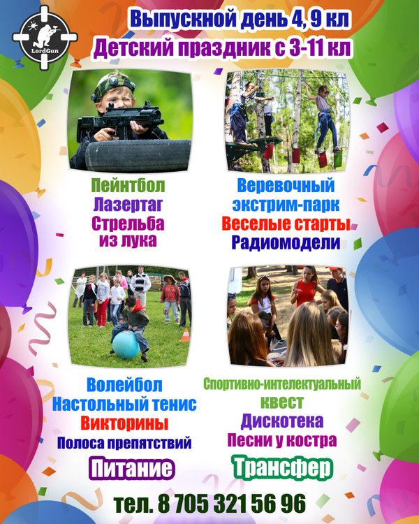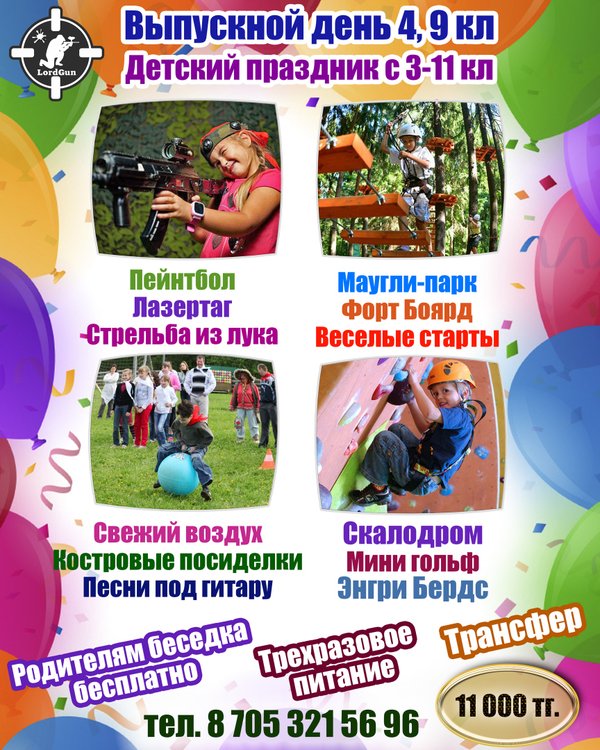 Детский праздник 11.05.2019 С окончанием 1 класса Информация по тел.. Lordgun.kz