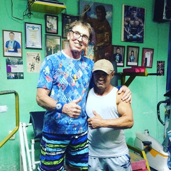 Петр Шпичак (06.08.2019): Аубакиров Даулет, поднимает 10 своих весов рядом с ним его тренер Виктор Шпичак!