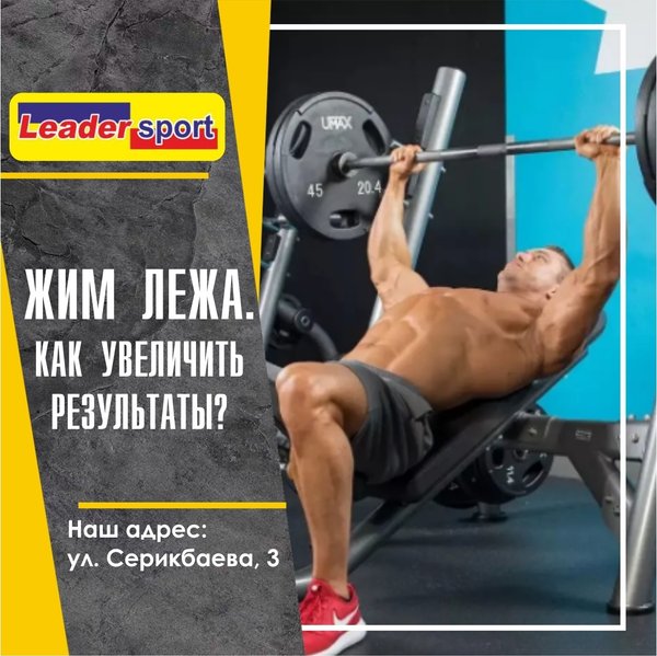 этого приема вы не только увеличите результат в жиме лежа, но и снизите риск получения травмы. 2. Используйте ступни ног. Следите за тем, чтобы ступни ног были твердо установлены на поверхности пола и оставались в таком положении на протяжении выполнения всего упражнения, Они не должны «гулять» по полу. Такое положение создает прочную опору из которой выходит ваша мощь и сила. Вообще все ваше тело должно сохранять стабильность и быть плотно прижатым в точках соприкосновения с опорой, ступни ног не являются исключением из этого правила. Кроме того, во время жимов, напрягите и выполните своеобразный толчок ступнями ног. Это сгенерирует дополнительную силу. Потренируйте этот прием во время обычных грудных тренировок, а затем, когда освоите его полностью, попробуйте применить в жиме на максимальный результат. Приходи на тренировки #ПАУЭРЛИФТИНГ Тренер: Поляков Иван. @polyakov_ivan_bear Расписание тренировок: Вт/Чт: 18:00. Стоимость: 8000 тг/ 12 тренировок. ____________________________________________ Наш адрес: ул. Серикбаева, 3. Телефон для справок: 54-13-49,. Ждем Вас! Ваш Фитнес клуб «Leader Sport»