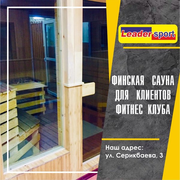 лишь собрать группу от 3-х до 6-ти человек. Группы заходят каждый час, на 1 час (30 минут на уборку перед заходом следующей группы). Предварительная запись у администратора! ВНИМАНИЕ! ВАЖНАЯ ИНФОРМАЦИЯ! Мы убедительно просим вас не брать в собой в сауну различные масла, мед, скрабы и прочую уходовую косметику! Наша сауна предназначена для прогрева вашего организма. Надеемся на ваше понимание! __________________________________ Наш адрес: ул. Серикбаева, 3. Телефон для справок: 54-13-49,. Ждем Вас! Ваш Фитнес клуб «Leader Sport»