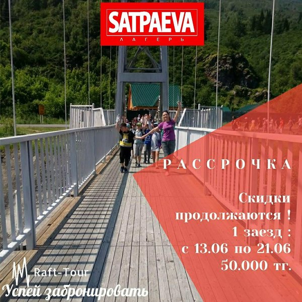 оначальный взнос от 10.000 тенге и далее, как Вам удобно, вносить ежемесячно доступную сумму; ⠀ 4.Внести всю сумму за 10 рабочих дней до начала заезда удобными Вам частями; ⠀ 5.Стоимость путевки на первый заезд 50.000 тг. Последующие заезды 62.000 тг. . В стоимость путёвки входит ⠀⠀⠀⠀⠀⠀⠀⠀⠀⠀⠀⠀⠀⠀⠀⠀⠀⠀⠀⠀⠀⠀⠀⠀⠀⠀ Проживание за 9 дней/8 ночей ⠀ 5-ти разовое комплексное питание согласно нормам. Трансфер от Усть-Каменогорска до Лагеря и обратно. (Автобусы 40—45 мест. Сопровождение машиной ГАИ). Фото съёмка, Скаладром Стрельба из лука Квест Дискотека Каждый вечер песни и истории у костра Незабываемые приключения Бесценный опыт, прекрасная добрая атмосфера и замечательные люди! ⠀ Мы бы на твоем месте уже поторопились . Если у вас остались какие-либо вопросы, обращайтесь по телефонам : ⠀