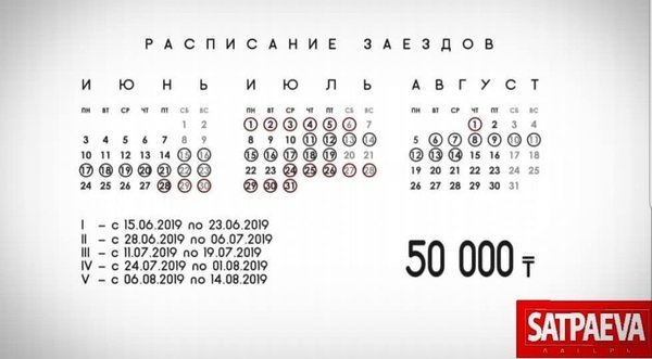 5.Стоимость путевки на первый заезд 50.000 тг. Последующие заезды 62.000 тг.