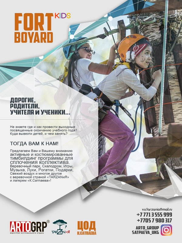 ы наполнены множеством смыслов, о том как нельзя и почему так все вышло.. Порой от интриги душа замирает, но в тексте мораль по местам все расставит! В другой стороне индейской деревни шаманские танцы и буря веселья. Танцуют все дружно под модные песни, ведь танец индейский весьма интересен! Расскажем о том как столь юные детки, идут по тропе, что оставили предки… Вдоль рек и руин, на священные земли, через горы с лесами пробирается племя! Охотник научит как выжить в лесу, как цель поразить, отпустив тетиву, он даже покажет как сделать шалаш, используя ветки, что под ногами у нас. Нельзя не сказать про веревочный город, ведь высоко на деревьях есть масса проходов! Веревочный мост и смотровые площадки добавят не мало впечатлений ребятам… в конце маршрута, испытания пройдя — головокружительный спуск и снова земля! Лагерь весьма интересен для тех, кто сможет прожить без интернетных утех… ___ Фото: @castan3da ___ @arto_group @satpaeva_ukg @lisi4ka_girl Пишите на What's App .